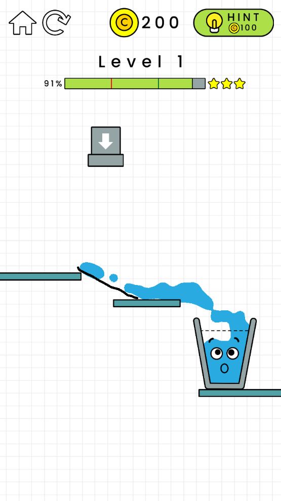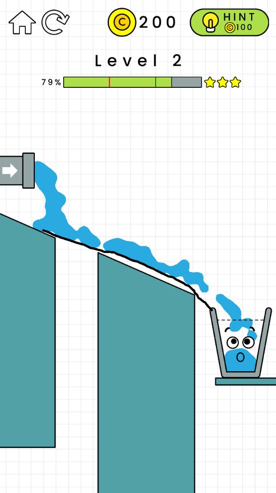 2、你的工作就是画一条线,让杯子充满液体,试着找出完成每个关卡的最佳方法;