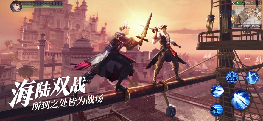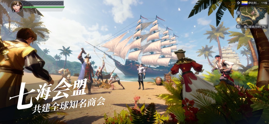 2、在海上玩家可以free的进行贸易将自己获得的宝藏交易获得大量的金币提升自己的实力。