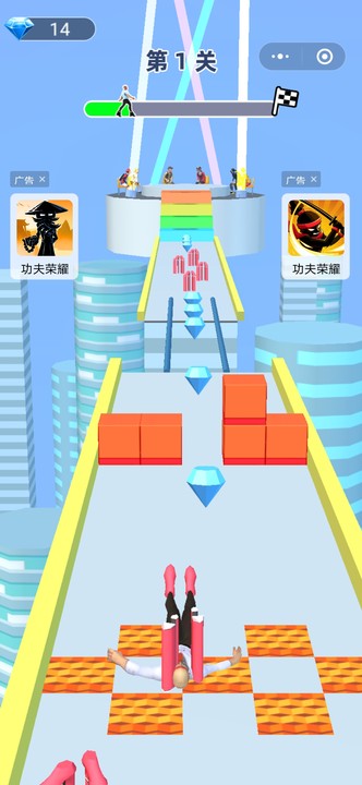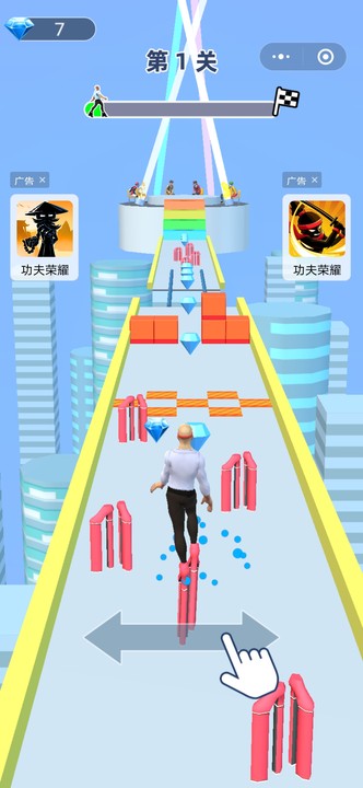 3.控制你的角色脚踩高跟鞋,躲避障碍,收集道具闯到终点。