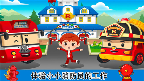 2、卡通的画风,化身为消防员,体验当消防员的乐趣,完成灭火任务。
