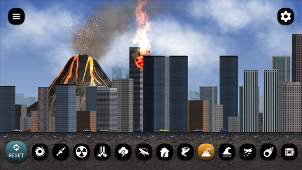 游戏者可自由使用武器攻击城市,如黑洞、激光、流星、龙卷风、洪水等。