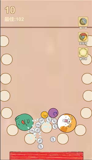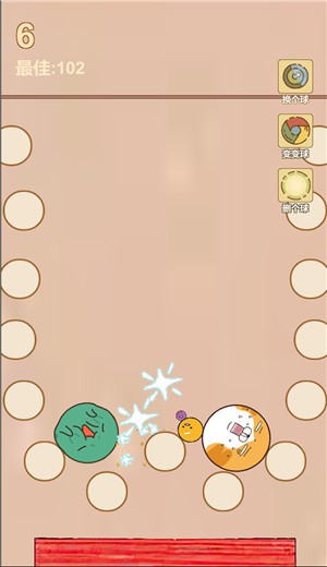 没有想到还蛮有趣的,前期还觉得这样不就不会输了吗,直到2个大个的爆炸的时候,我直接就开始怀疑人生了,画风挺可爱的,但是整个游戏其实在内容体验上就没有那么丰富了,可玩性有些单一,合成大西瓜爆珠版本呀,消磨时间倒是还不错,画面风格看着就挺舒服的,玩法很好上手,比较适合当成休闲游戏来玩,游戏还是挺带感的,爆珠的表情也很有趣。