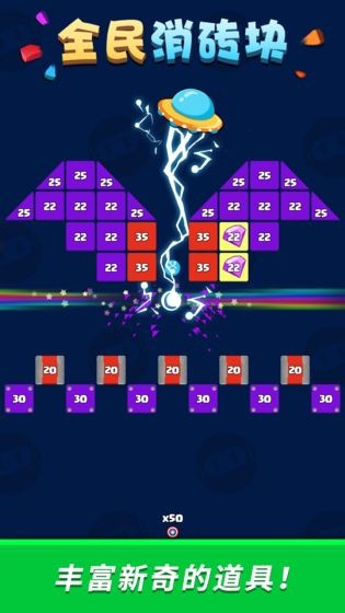3、全民飞鱼消砖块可解锁自己喜欢的小球皮肤,或解锁需要的道具。
