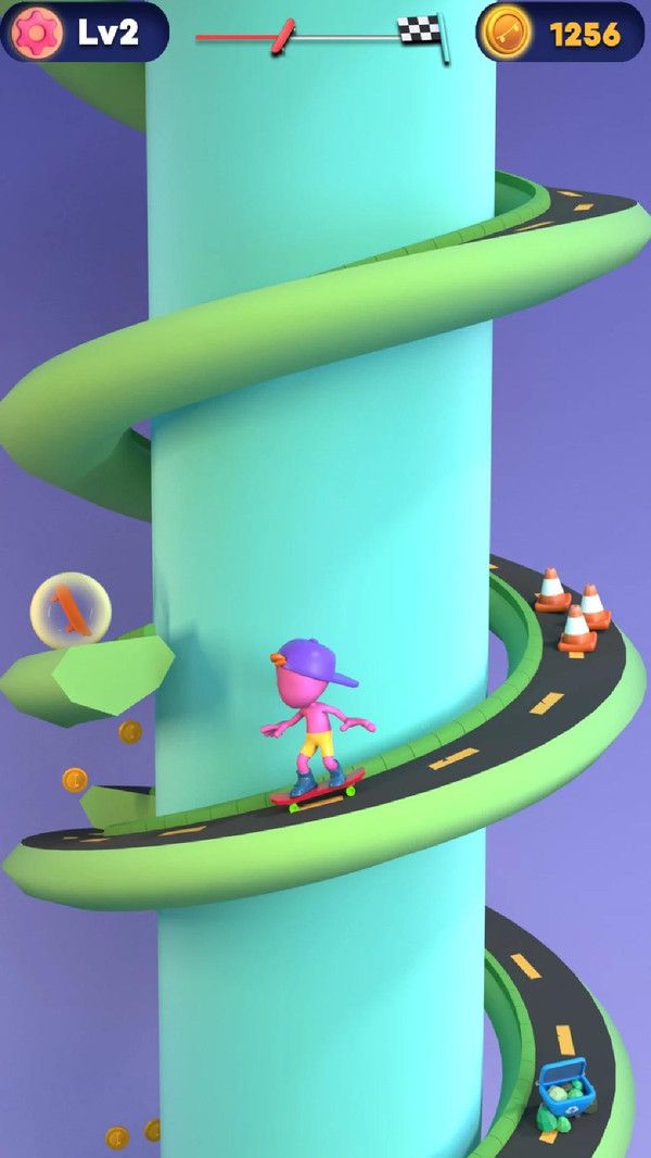 螺旋滑板中的玩法非常的简单可以不断的挑战;