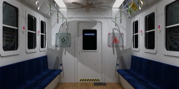 明丽的火车车厢中空无一人,火车还在安静的