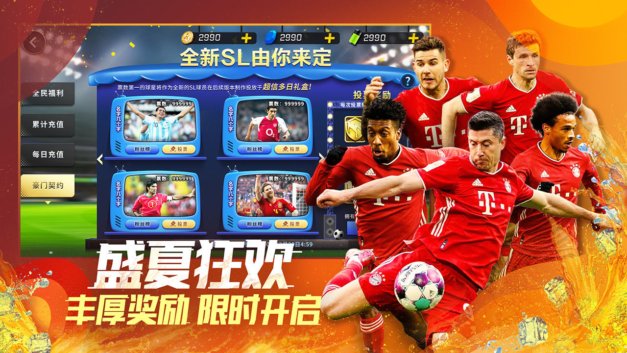签约超级球星,组建最强豪门,“MSN”“BBC”任你调配,享受收集球星、培养球星、发掘新星的无尽乐趣。