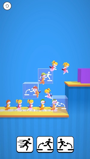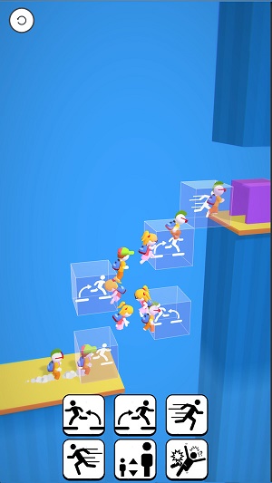 要紧紧挨着前方的小人然后奔跑跳跃。