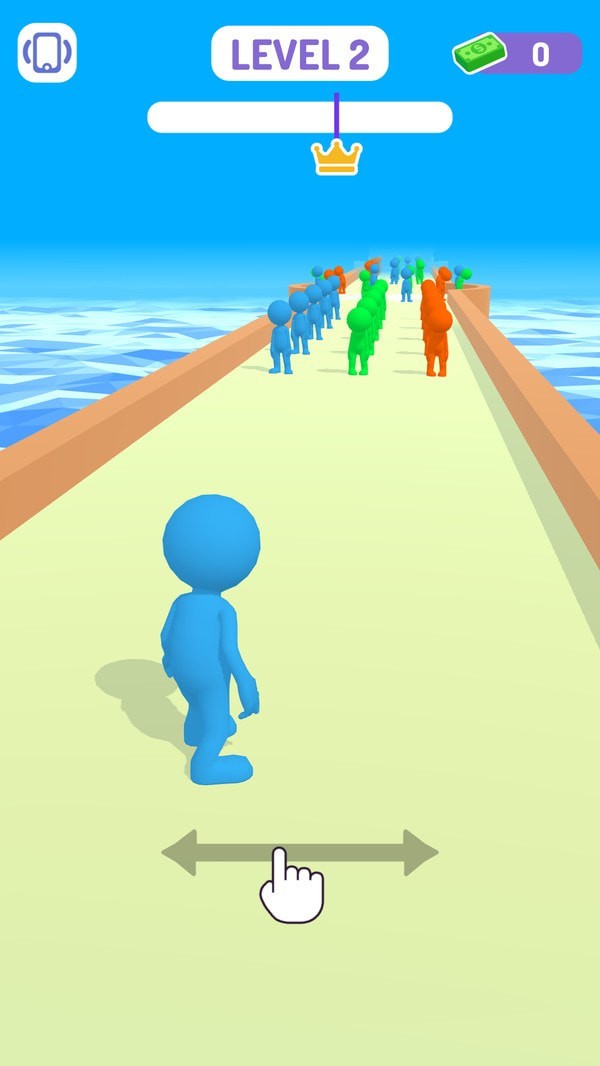 要控制着小人迅速奔向皮肤颜色相同的队伍中。