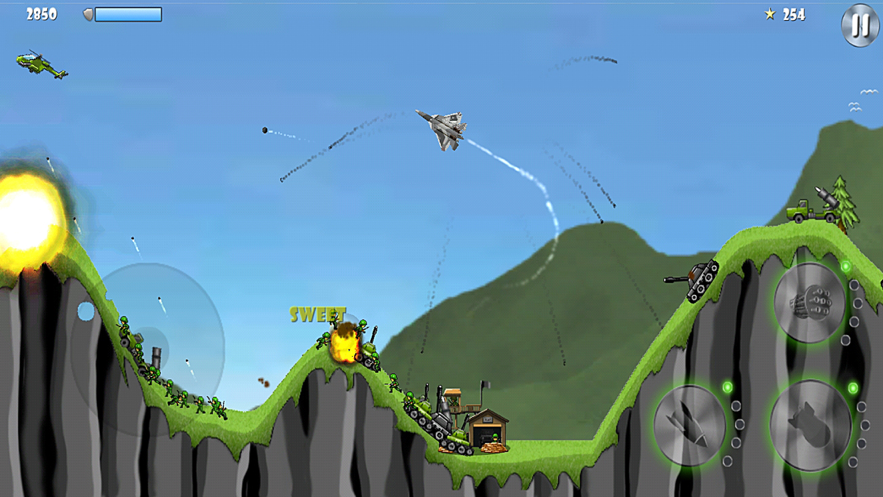 这款游戏玩起来相当的欢乐,首先地图是完全随机生成的,也就是说每次挑战都是全新的内容,玩家能够自由升级和部署相应的武器和装备,让这次空袭更加的刺激,将敌人统统消灭,非常的有意思!