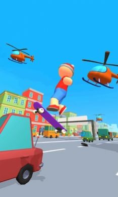 2、Q版的画面,有趣的玩法,考验你的滑板操作之旅,掌握技巧才能获胜。