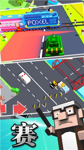 3、避免撞到其他的车辆和障碍物,在十字路口避免压扁动物和人,否则你会被通缉,努力飞驰,完成更多的挑战。