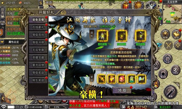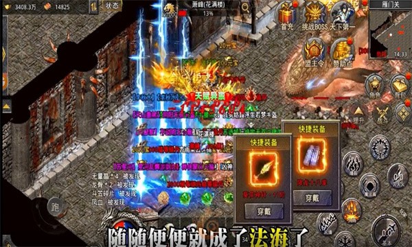 3.所有装备高爆掉落,刀刀对决刀刀震撼,皇城对决实力争夺沙巴克话语权!