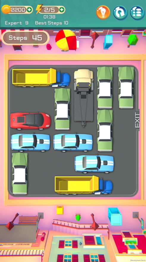 2、游戏采用了简约的卡通画风,各种的停车场行驶难题,等你挑战。