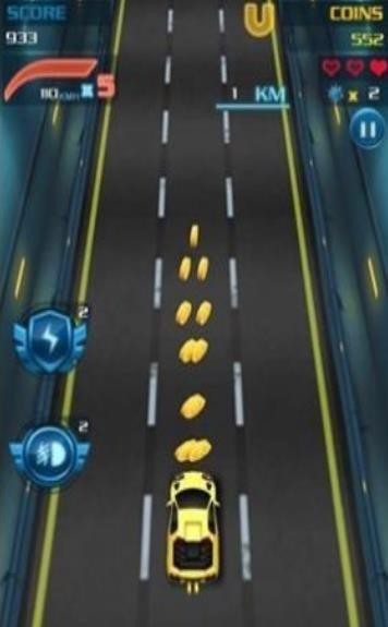 重力感应控制汽车行驶方向,发动发动机穿越市区交通,经过长时间等待超越。