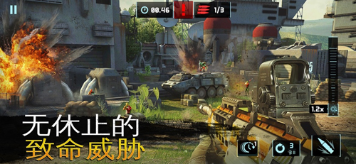 炽热狙击是一款以狙击暗杀为题材的枪战射击手游。游戏延续其系列高品质游戏的优良制作水平,采用顶级3D引擎进行设计,武器、枪械人物甚至连武器射击时的弹道、反作用力以及火花都有比较细致的表现,音效也比较写实,玩家在游戏中扮演的是一名狙击手,带你在这里感受到身临其境的游戏体验。游戏画面真实,玩法丰富有趣。