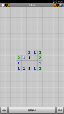 方格中数字则表示其周围的8个方格隐藏了几颗雷;