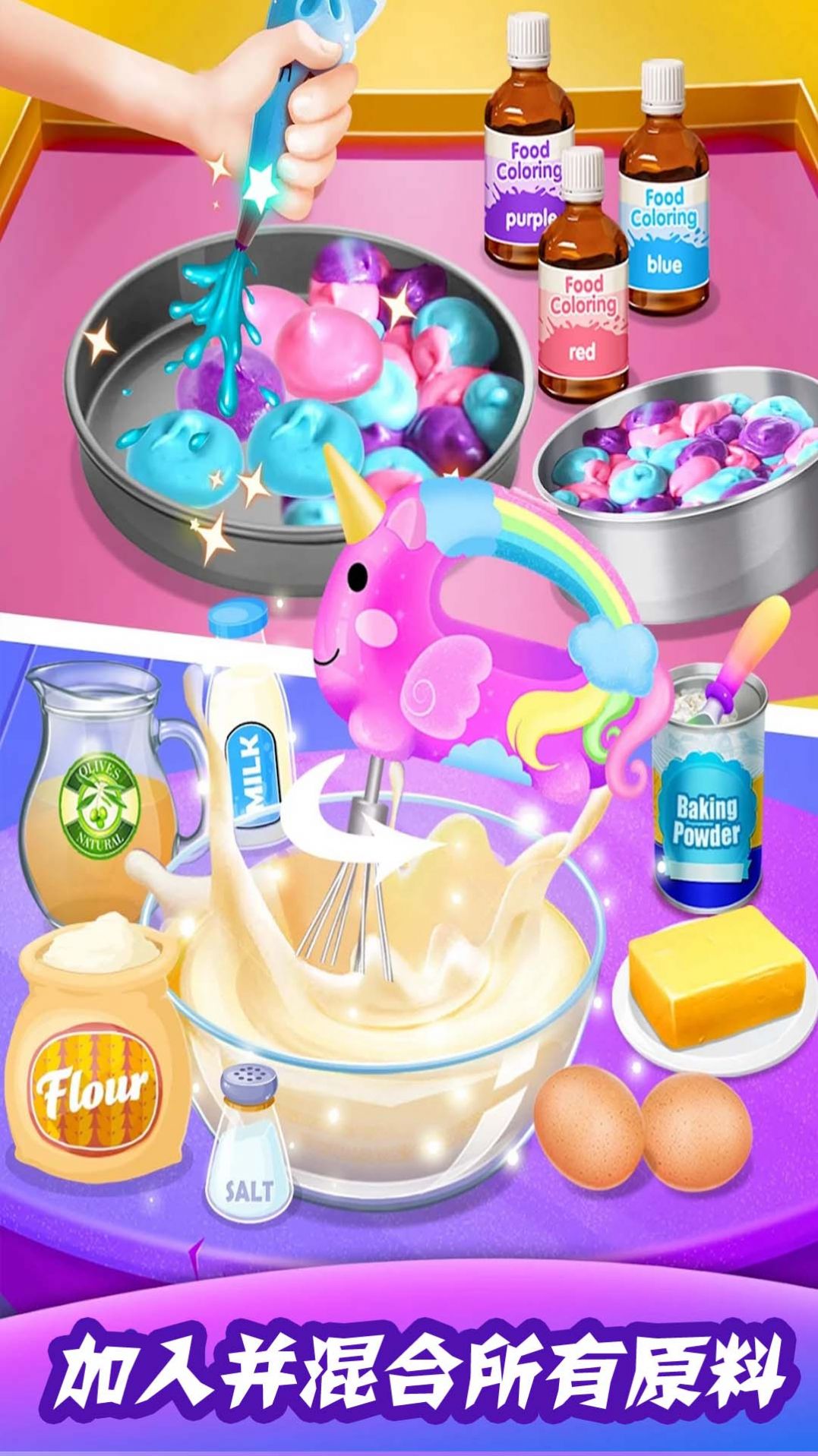 2、大量的公路独角兽蛋糕装饰,大量逼真的烹饪工具可供玩耍且易于跟进。