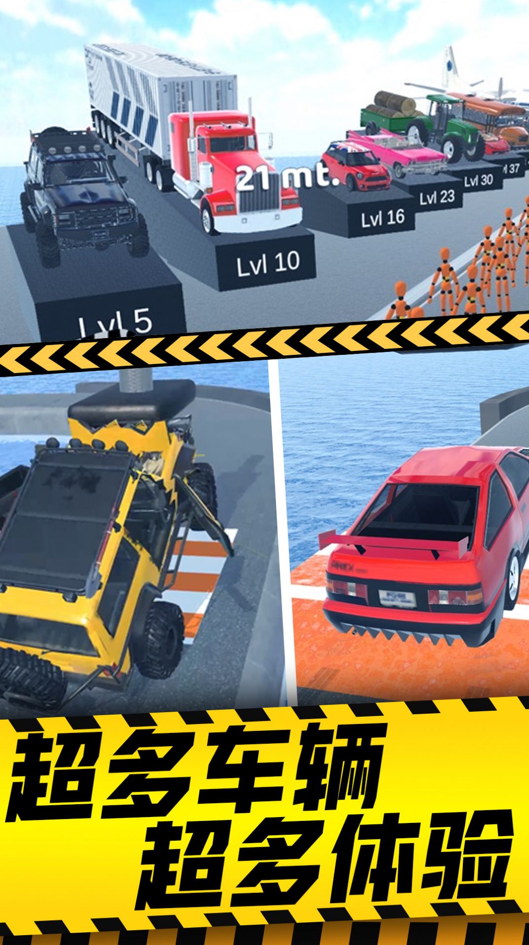 减压破坏模拟器游戏安卓版是一款好玩的驾驶汽车撞击减压类游戏,游戏拥有非常细腻的3D建模,超多特色的场景地图,你可以自由的驾驶汽车进行撞击测试,各种的撞击画面非常的减压,超多的汽车可以解锁使用,给你不同的减压体验。