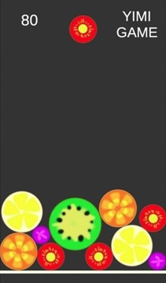 2、可以将不同的水果放入游戏中,并将相同的水果合成在一起。