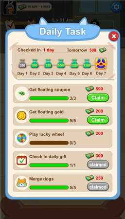合成小狗崽红包版是一款采用卡通画面的趣味