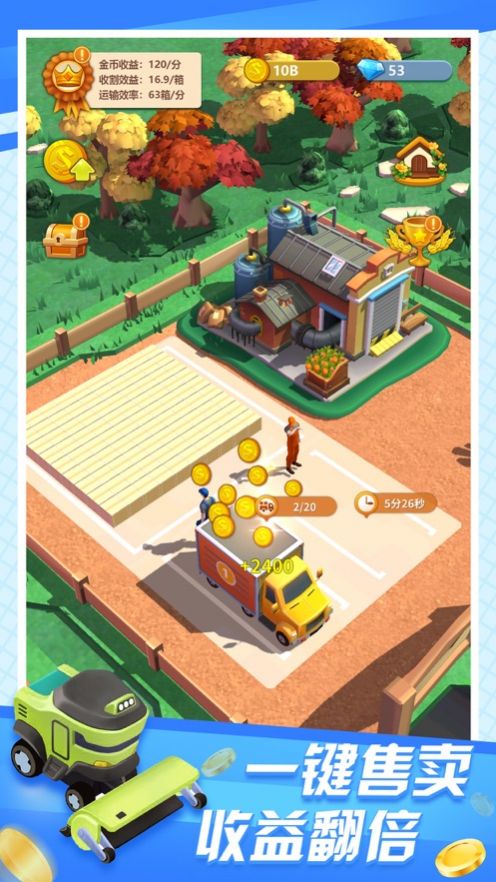 2、在小麦田、玉米田、番茄农田,甚至于向日葵农田中自由收割,售卖后就能赚钱啦;