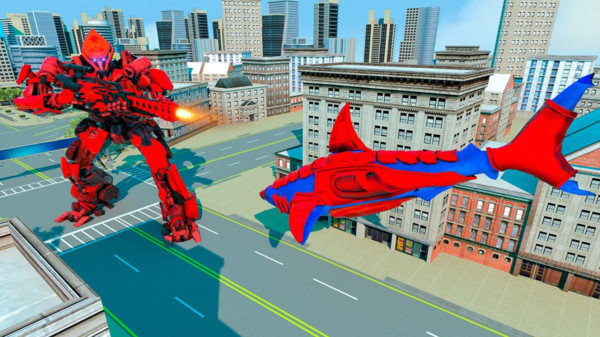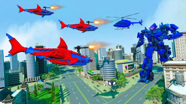 大鲨鱼机器人模拟器是一款非常帅气的动作类超级英雄游戏。你可以在游戏中随时变身成为一头会飞行的大鲨鱼,使用不同的能力来与敌人交战。游戏的画面非常的精致,并且还有真实的光影效果,玩家就像在看大片一样。灵活的使用你独特的能力,成为这座城市的守护神吧!