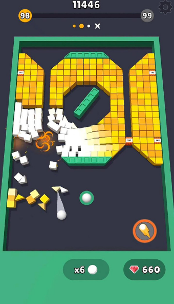 1、动你的手指,瞄准,放开你的手指,让球射中!当平方数变为0时,立方体被破坏。