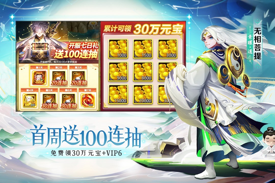 最不花钱的手游!洪荒之力开启进入疯狂送礼模式,首周直送40000元宝,第7天直送西游橙卡孙悟空!天天有福利,日日嗨到爆!365天每天登录立领1000元宝,别问为什么,任性!