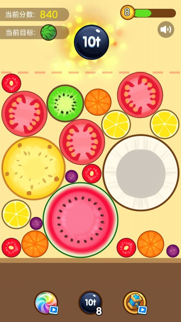 1、同样的水果碰撞后,它会消除并合成新的水果;