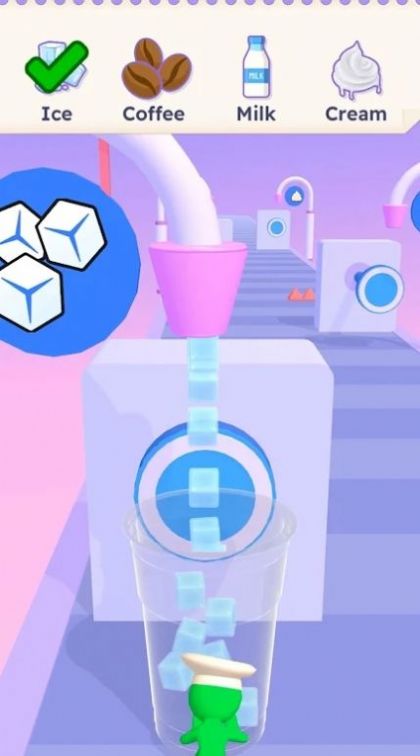 1、进入到这里面跑酷闯关的时候,需要你在赛道上控制咖啡杯,在赛道上跑酷的过程中制作咖啡。