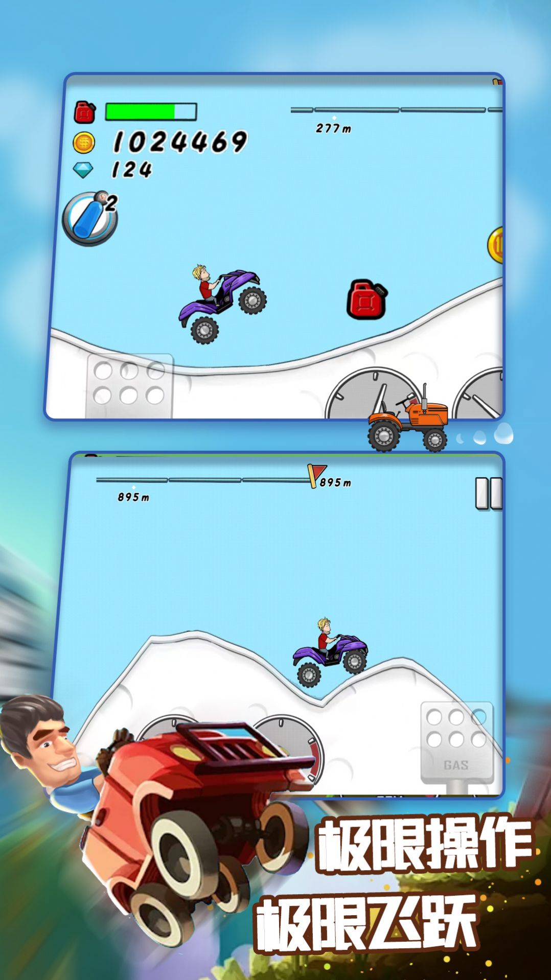 登山越野 target="_blank" title="2022好玩的飙车游戏大全" >飙车游戏手机版最新版是一款相当精彩有趣的越野车驾驶模拟游戏,这里采用的是很不错的卡通的画风呈现,然后选择各种有着不同造型的越野车,我们在各种陡峭的山坡道路场景下,去开启精彩的竞速的比拼,你需要有着更好的驾驶的技术,才可以完成。