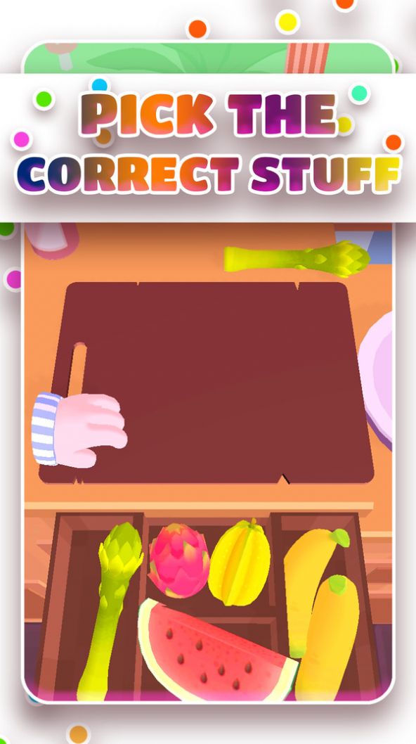 2、烹饪切片3D食物出现在你的眼前,玩家将与你的刀具一起努力。