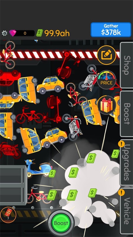 游戏操作起来特别简单,我们直接按照游戏提示的内容去操作,就能够快速将汽车放在粉碎机里,按下启动按钮以后粉碎机就能正常工作,很多报废的汽车都会在瞬间被粉碎碾压,这个过程是非常解压且有意思的,在游戏中,你需要建立自己的车辆回收工厂,在车辆达到一定的数量时启车辆粉碎机,把车辆放进粉碎机里粉碎,来赚取更多的收益,你需要利用这些收益来购买设备提升工作效率。