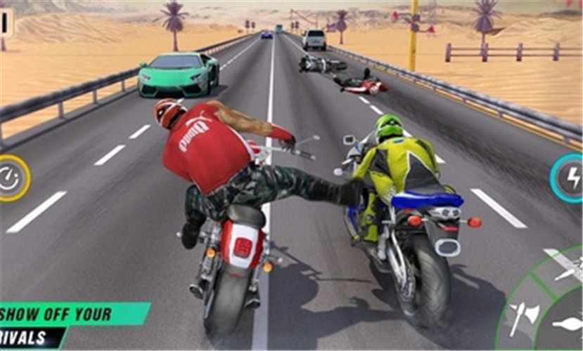 在这款游戏中的成为最强大的摩托车骑手,在没有到达终点的情况下玩家要尽所有可能来使用武器淘汰对手各种的玩法非常的多样和趣味,所有的过程中的欢快体验都是丰富的。