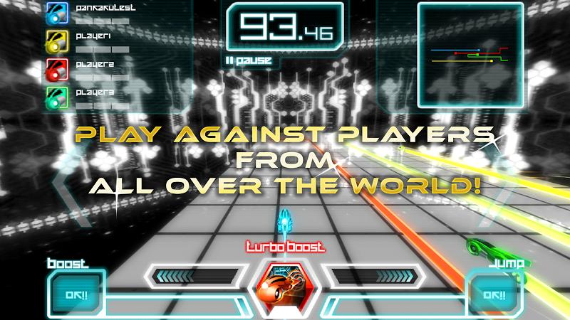 2、游戏的规则很简单,通过不断的移动和改变行进方向,在自己身后留下光之轨迹,来迫使对手进入绝境,撞上你所留下的光之轨迹,即可获得胜利;