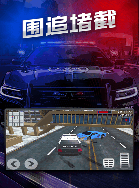 3、4辆强大的警车解锁平稳的3种类型控制,升级你的车,追捕最可恶的罪犯。