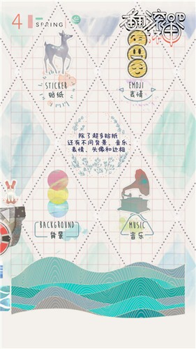 2,有牛、鹰、猫咪、考拉、恐龙等动物,可以通过360°旋转&左右移动贴纸来调整位置。