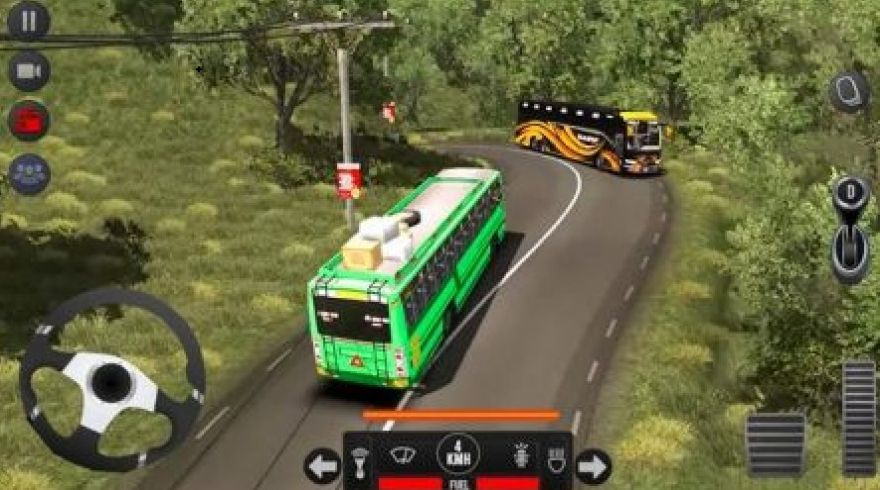 1.驾驶着大巴车在不同的路上行驶,整个游戏添加了逼真的雨天系统以及山路场景。