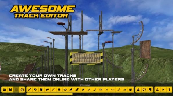「摩托车特技秀」游戏中你将驾驶着一辆摩托车在非常崎岖额赛道上完成你的特技表演,游戏的操作非常简单,只需要控制摩托车的前进后退以及身体的前请和后倾就能完成各种不可能的特技表演,你还可以在游戏中自定义地图,非常厉害。