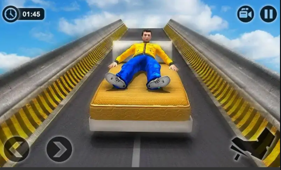 这是一款空中极限冲刺游戏,你可以坐在轮椅上,也可以解锁床、沙发、浴缸等奇怪的座椅。