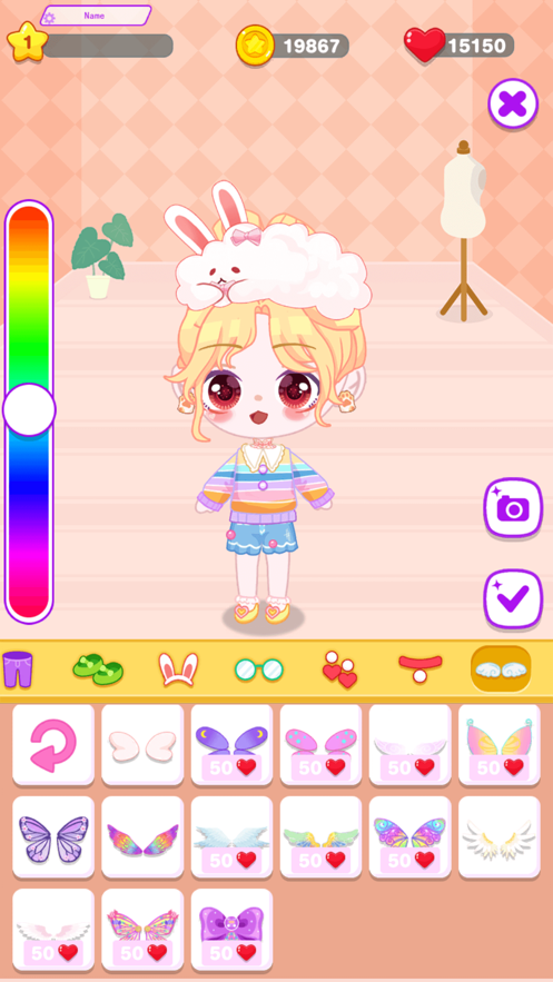 用最潮流的动漫时尚打扮你的角色!混色搭配数百款衣服、发饰、首饰、帽子等。