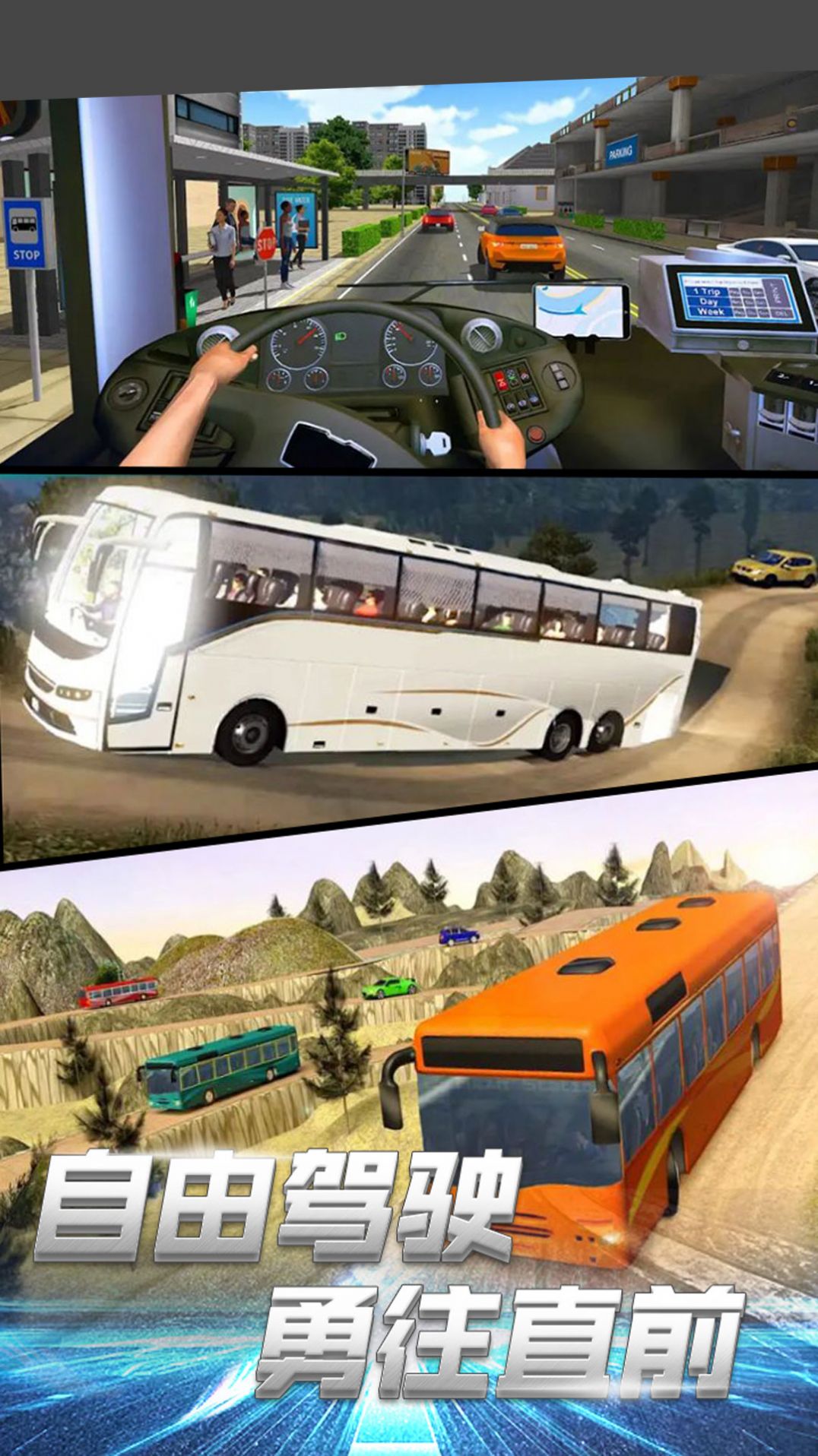 1、驾驶拟真的公交车辆,在规定时间内到达目标站台接送乘客,获取最大化的送货收入