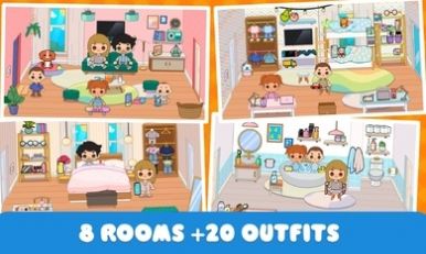 迷你家庭住宅游戏中文版最新版(Minni Home Play Family) 是一款趣味模拟经营游戏,我们可以在游戏中去自由的打造自己的住宅,这里相当可爱的游戏的画风设置,以及超多的有意思的角色选择,充分的按照你自己的想法去进行住宅的打造,去建造你的独一无二的的住宅吧。
