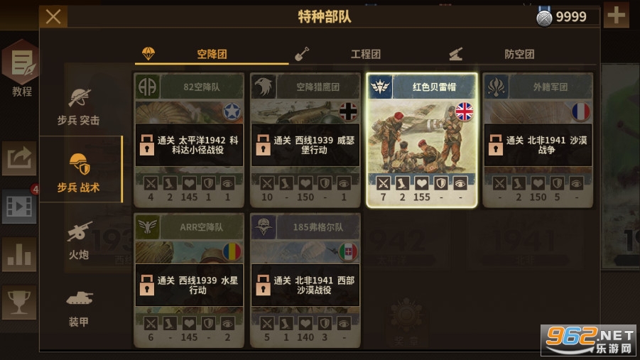 德军虎式坦克、卡尔大炮、苏军喀秋莎火箭炮、KV坦克、美军82空降团、英军皇家S.A.S团等超过60种特种部队等你招募。