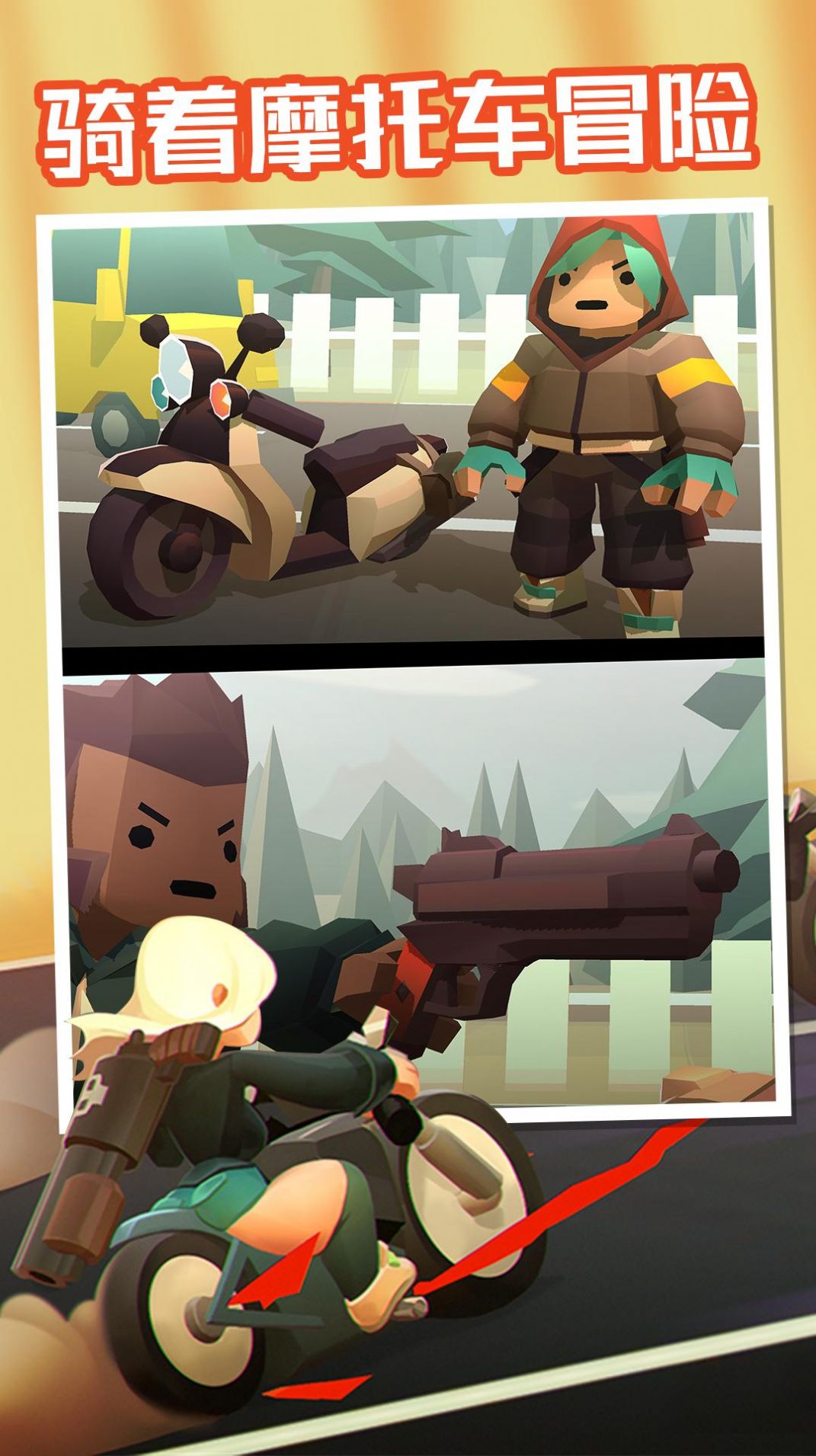 1、在游戏中,玩家拥有紧张刺激的游戏体验,游戏玩法有趣。玩家在游戏中骑着摩托车冒险,体验各种冒险挑战,非常兴奋。