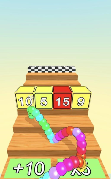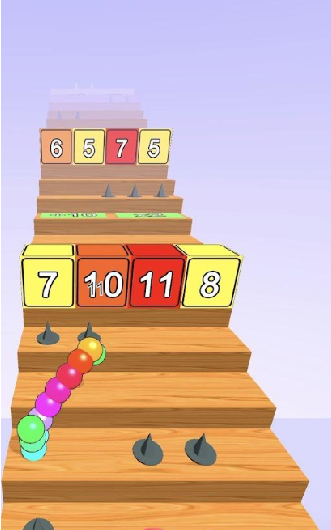 1、在楼梯中间有着不同颜色不同数字的方块,这些方块会影响小球的前行。