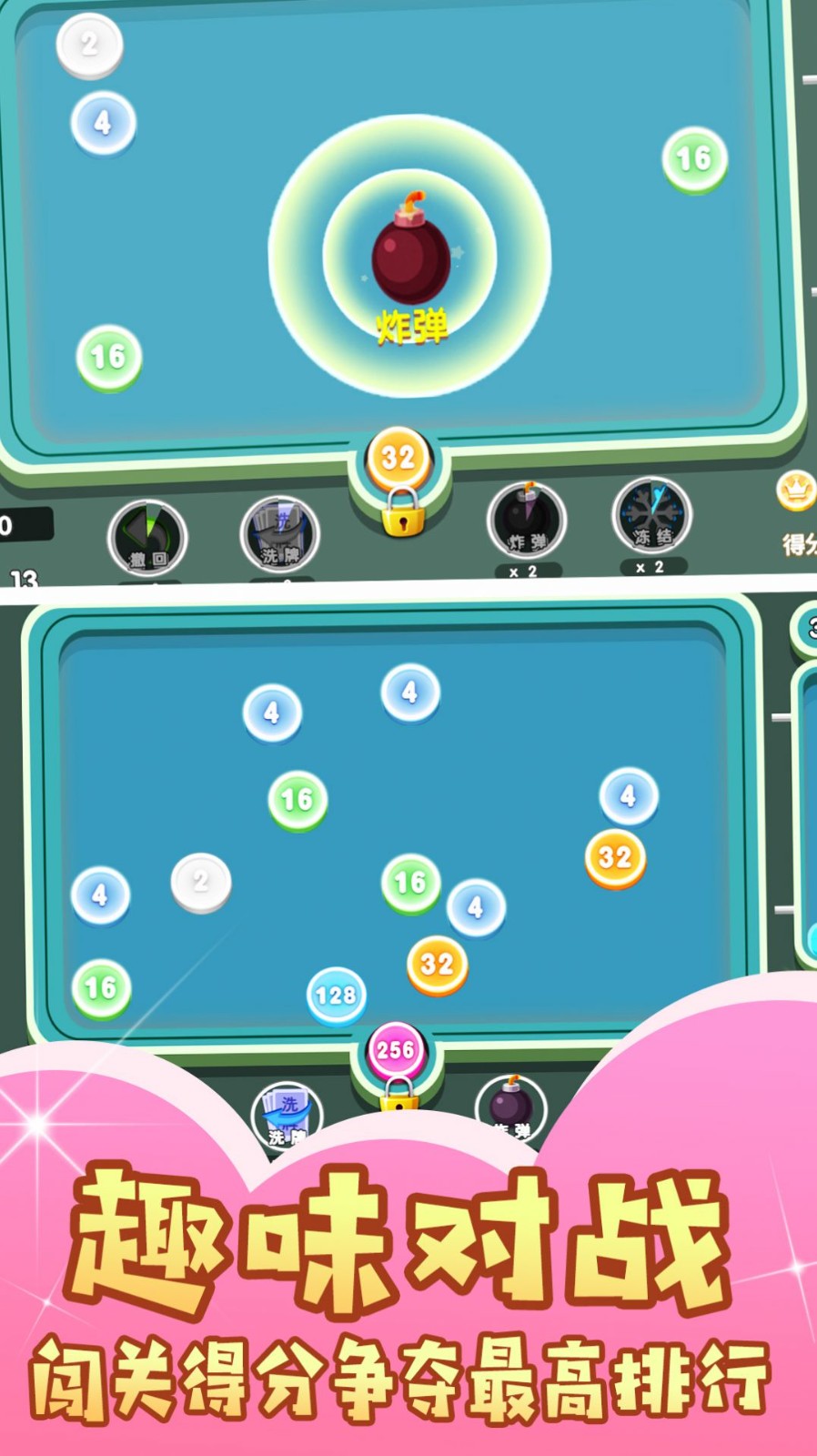 3、发挥你的聪明才智,去不断的消除合成,选择合适的道具,顺利的完成2048。