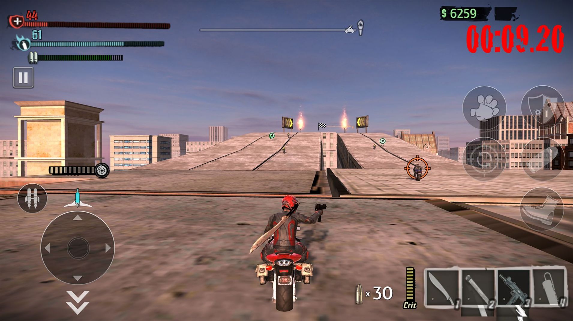3.你在驾驶摩托车的同时,还能够使用手中的武器来攻击你的对手。
