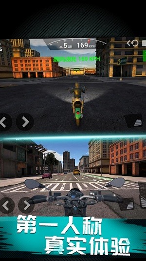 一款摩托车飙车游戏,在这个虚拟的游戏世界里,你可以驾驶不同的汽车进行飙车,模拟摩托车城的飙车有了真实的场景。