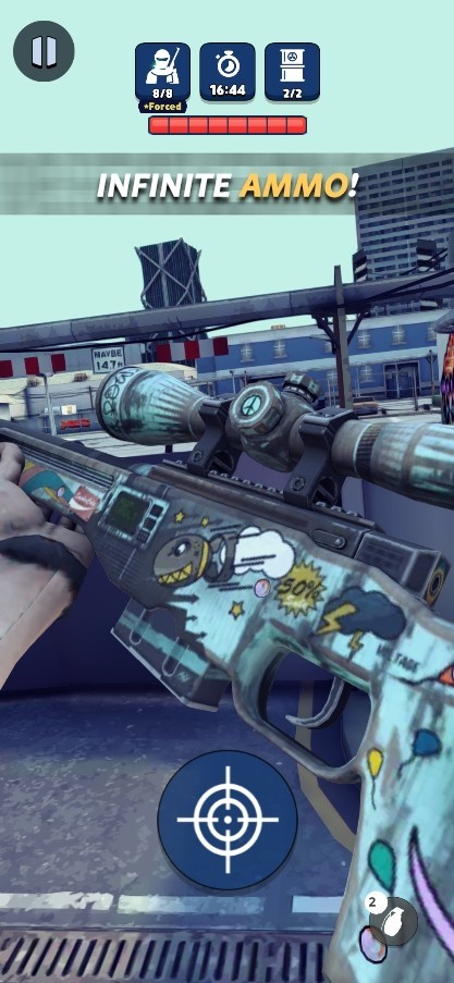 2、控制卡通人物,尽情战斗,完成狙击任务,获得奖励,解锁武器。
